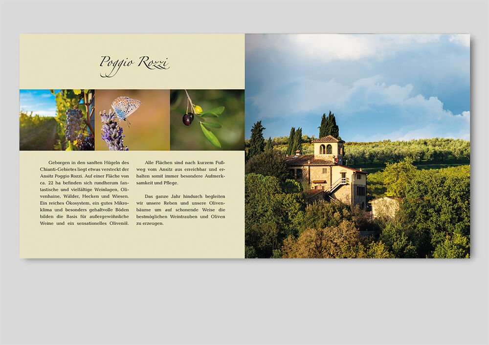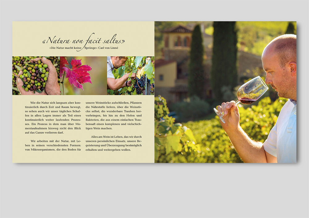 «Alles am Wein ist Leben» – Umsetzung in einer Image-Broschüre in verschiedenen Sprachversionen.