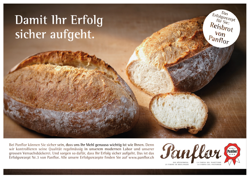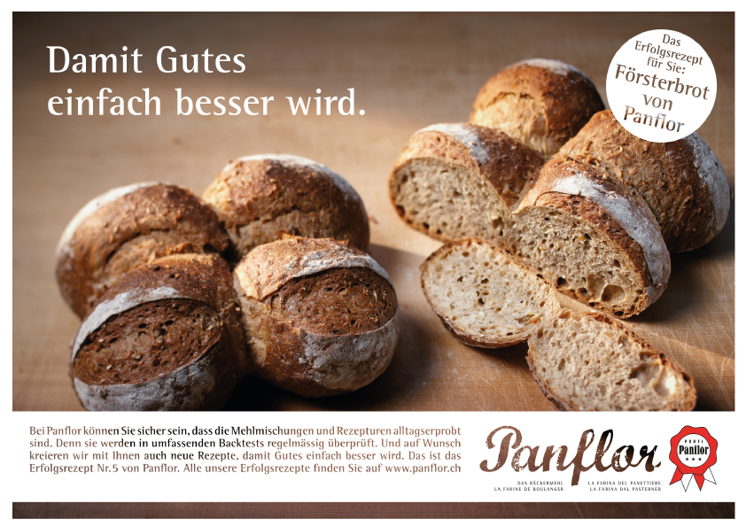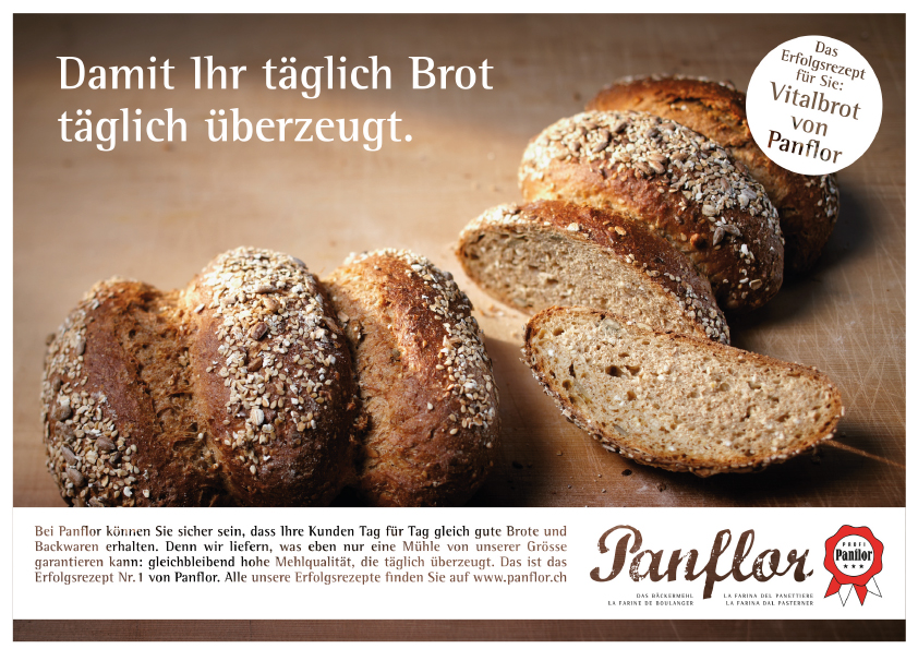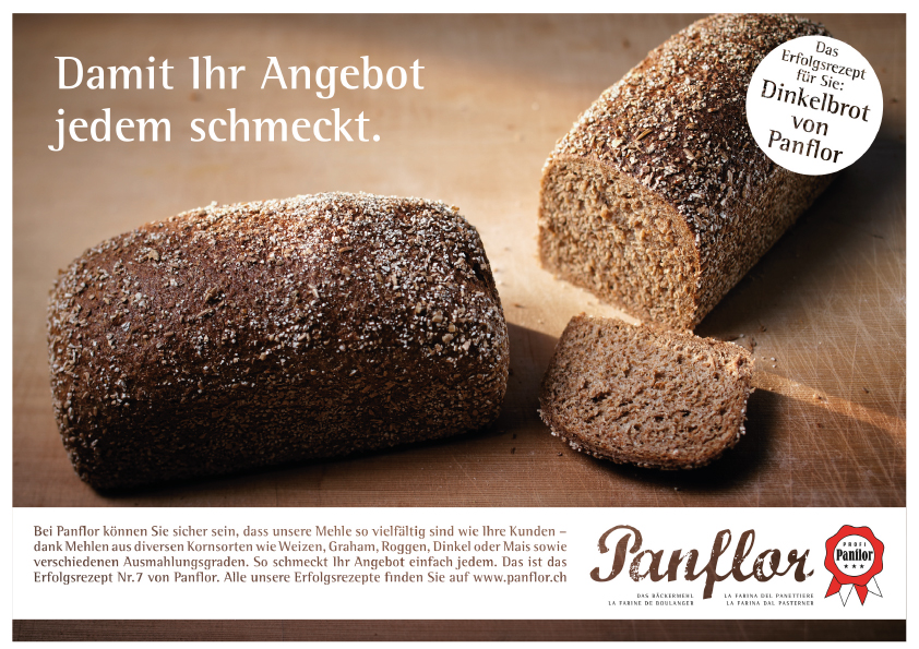 Gestaltung einer Inserateserie «Panflor – Das Bäckermehl» in der Fachpresse. Bewerbung von neuen innovativen Brotrezepten.