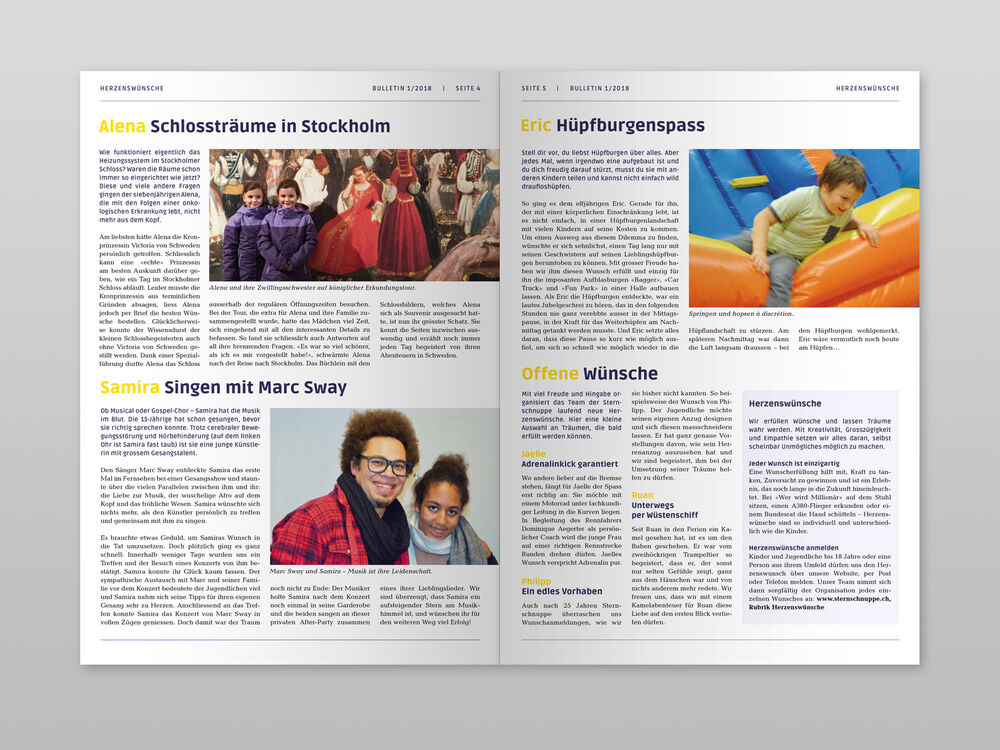 Gestaltung und Realisation von Bulletins in deutscher und französischer Sprache.