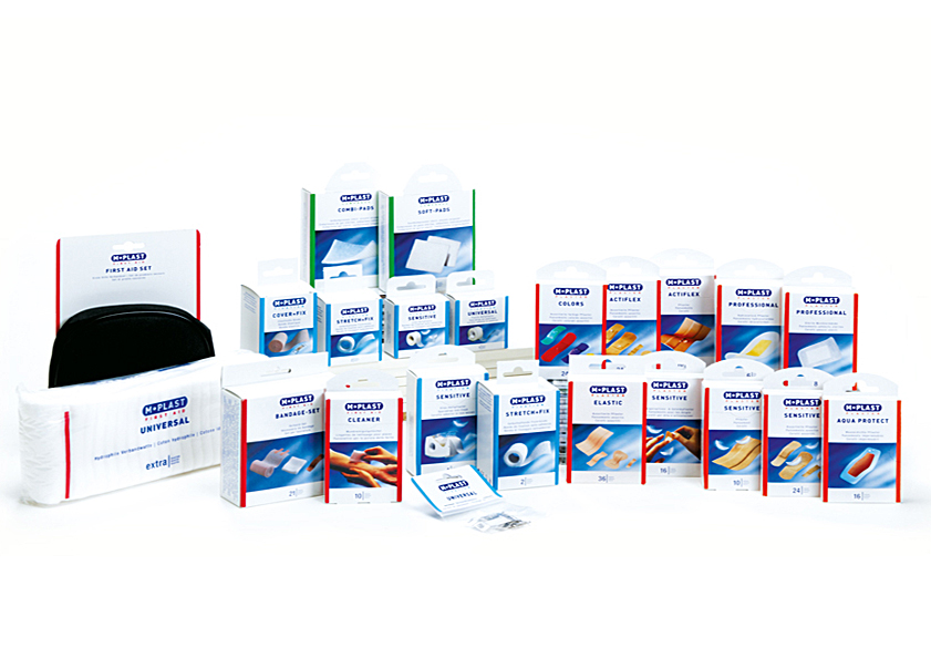 M Plast Wundversorgung für Migros Genossenschaftbund – Packungslinie mit 28 Referenzen.