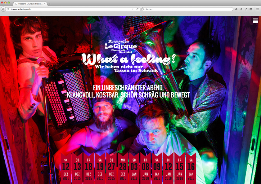 Gute Küche mit Spiel und Musik. Seit vielen Jahren lädt Ruth Kreis in ihre Brasserie LeCirque ein, wo sich Gäste am Jahresende mit einem schön schrägen und sinnlichen Dinner mit Spektakel verwöhnen lassen können.