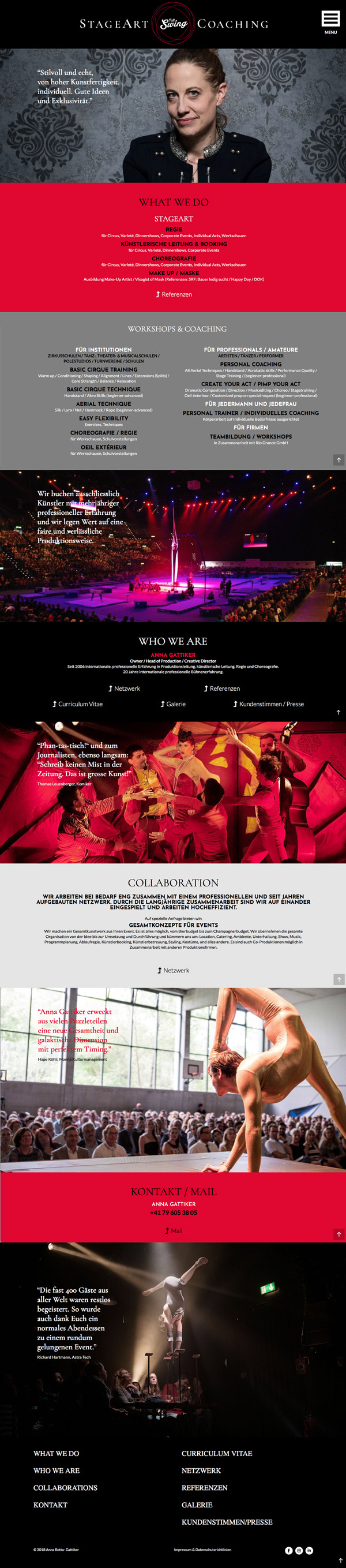 Unter dem Namen "Full Swing" bietet Sie auf ihrer Webeite ihre Dienste im Berreich: Regie, Choreografie und Coaching an.