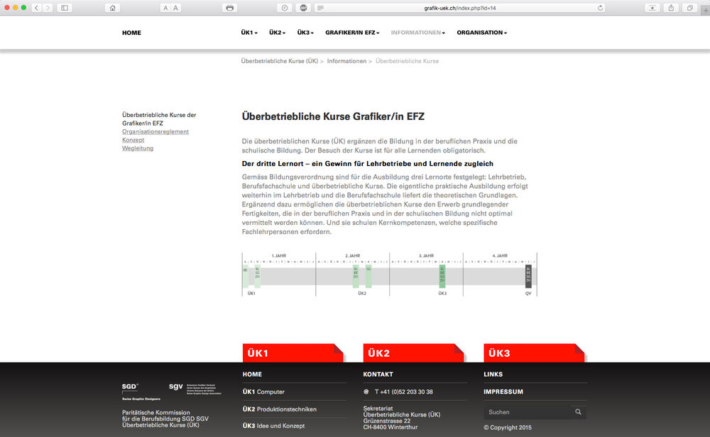 Die Webseite gibt einen grundsätzlichen Überblick über die Ausbildung und alle angebotenen überbetrieblichen Kurse. Jeder der drei Kurse wird im Detail vorgestellt und bietet Informationen zu Daten und Kursorte, Thema und Lehrmittel in allen Kursregionen der Deutschschweiz.