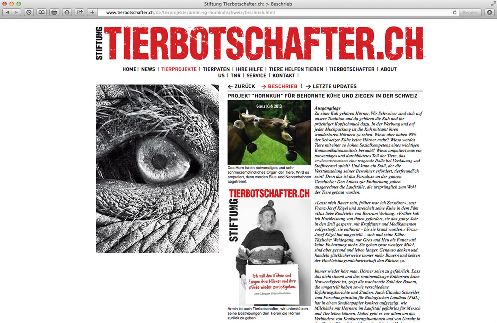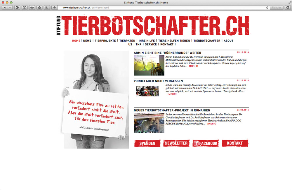 Die Stiftung Tierboschafter.ch unterstützt Tierschutzprojekte und verbreitet Botschaften zum Wohl der Tiere.