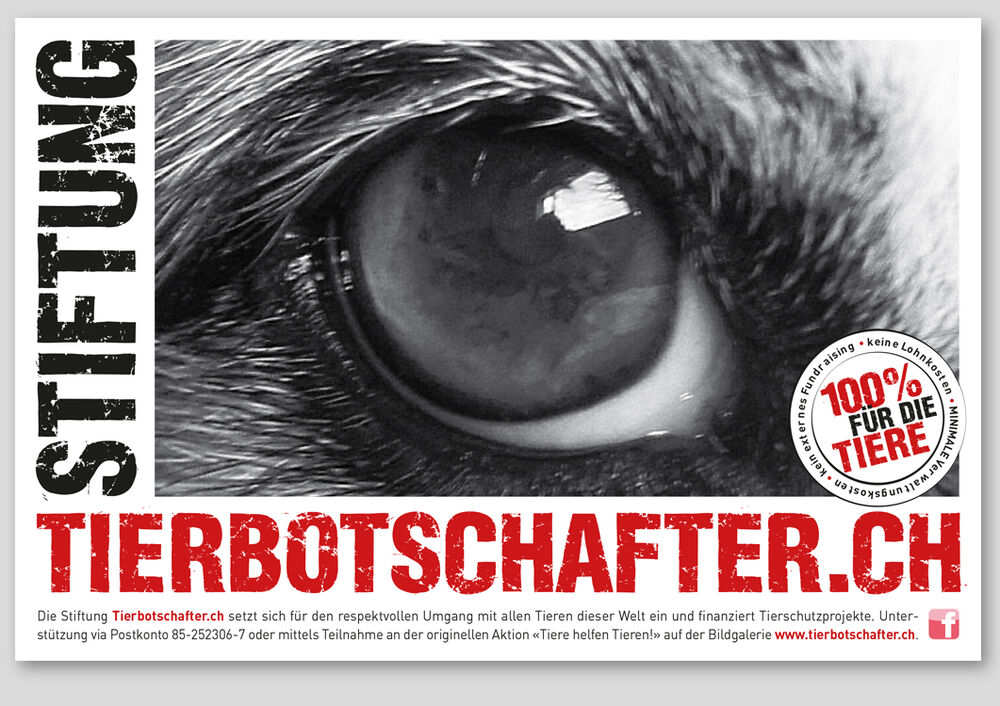 100 % für die Tiere. Die Stiftung Tierboschafter.ch unterstützt Tierschutzprojekte und verbreitet Botschaften zum Wohl der Tiere.