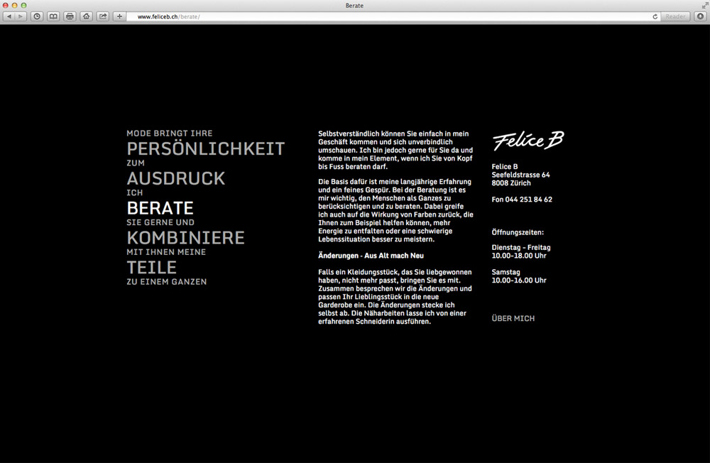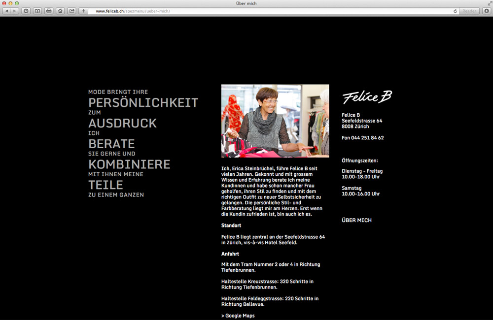 FeliceB ist seit über 30 Jahren auf Mode in den Grössen 42 bis 56 spezialisiert. Die Stärke liegt in der Kombinierbarkeit der Einzelteile. Die Inhaberin berät mit viel Erfahrung und Herzblut.