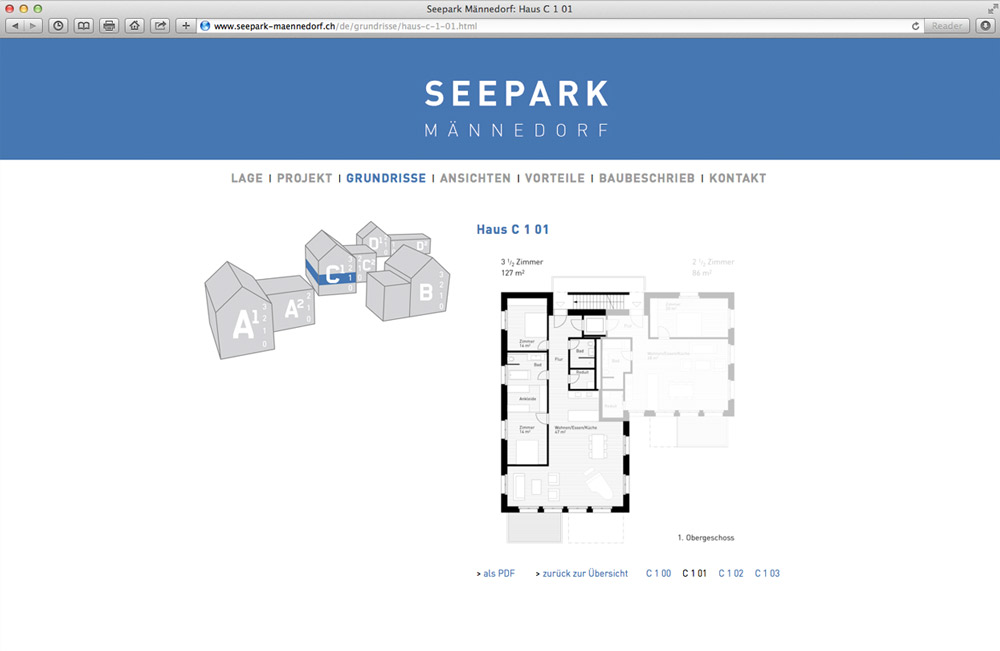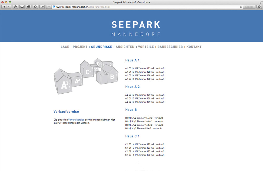 Temporäre Webseite für den Verkauf der Wohnungen. Informative CMS-Lösung mit interaktiver Ansicht der einzelnen Wohnungen inklusive den Grundrissen.