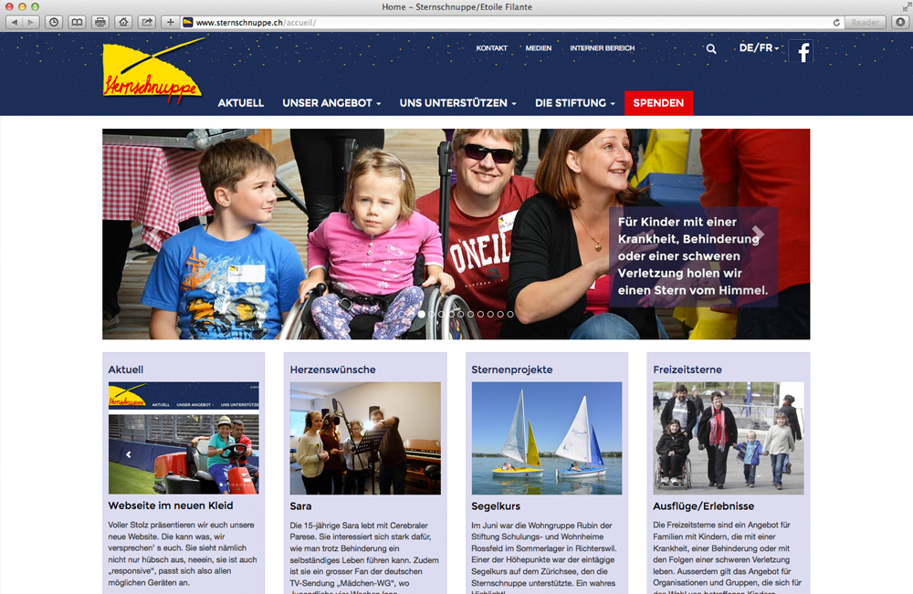 Die Stiftung Kinderhilfe Sternschnuppe bringt Freude und Abwechslung in das Leben von Kindern und Jugendlichen, die mit einer Krankheit, Behinderung oder mit den Folgen einer schweren Verletzung leben. Eine schweizweit tätige Non-Profit-Organisation.
