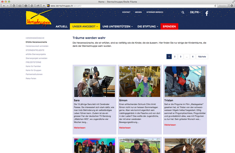 Hauptsächlich von Erwachsenen genutzte Webseite mit Informationen rund um die Stiftung. Umsetzung des Corporate Designs in einer Typo3-Lösung mit Newsteil, Galerien, Online-Spenden, etc.