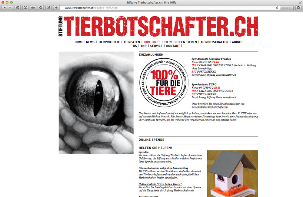 Die Stiftung Tierboschafter.ch unterstützt Tierschutzprojekte und verbreitet Botschaften zum Wohl der Tiere.